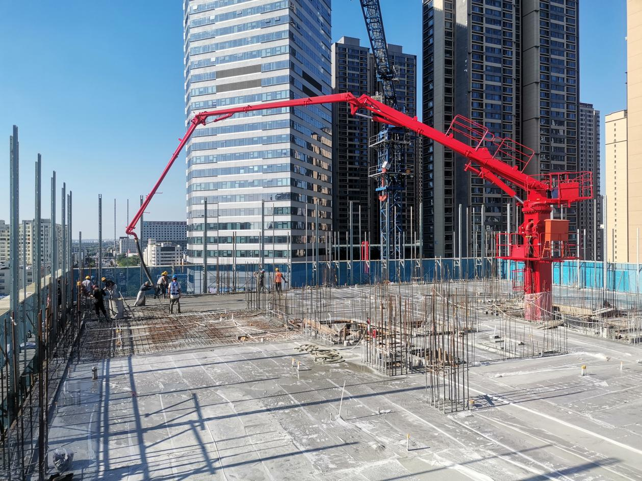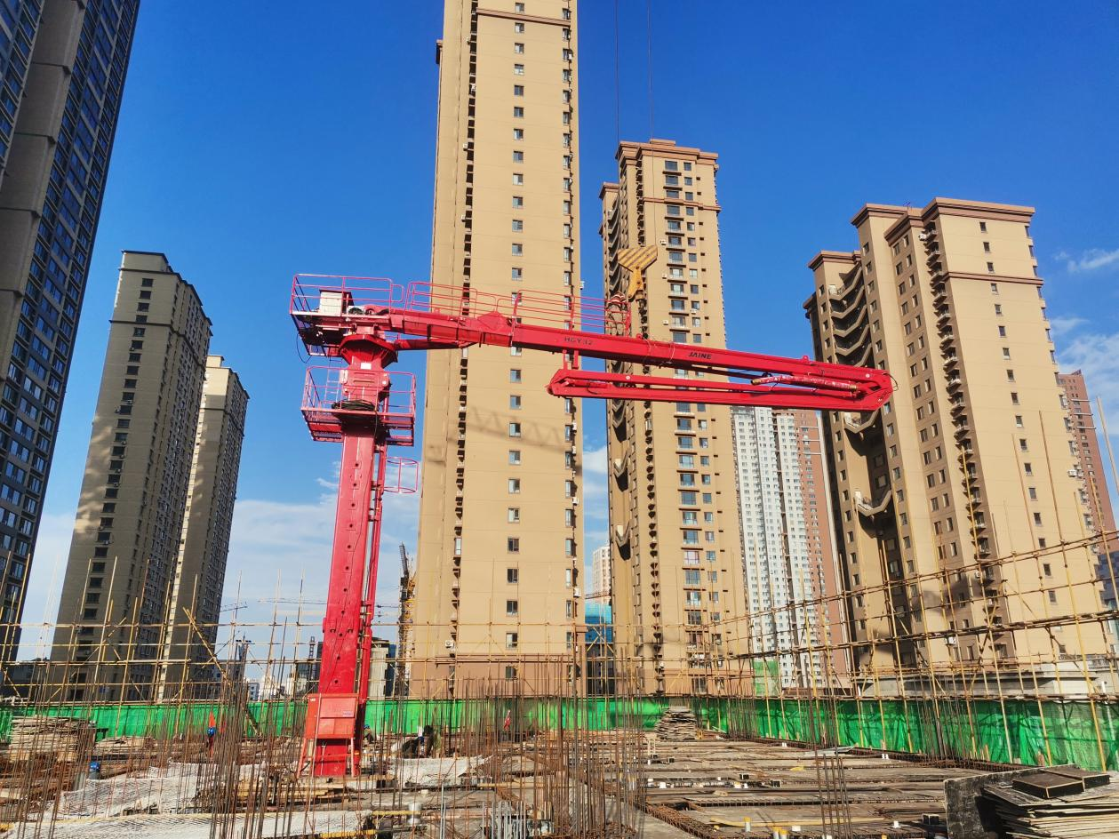 廊坊凱博建設(shè)機(jī)械科技有限公司生產(chǎn)的?JAINE建研?HGY32和HGY24電梯井爬升式布料機(jī)成功在沈陽旭輝鉑悅·公望項目中順利安裝并投入使用。