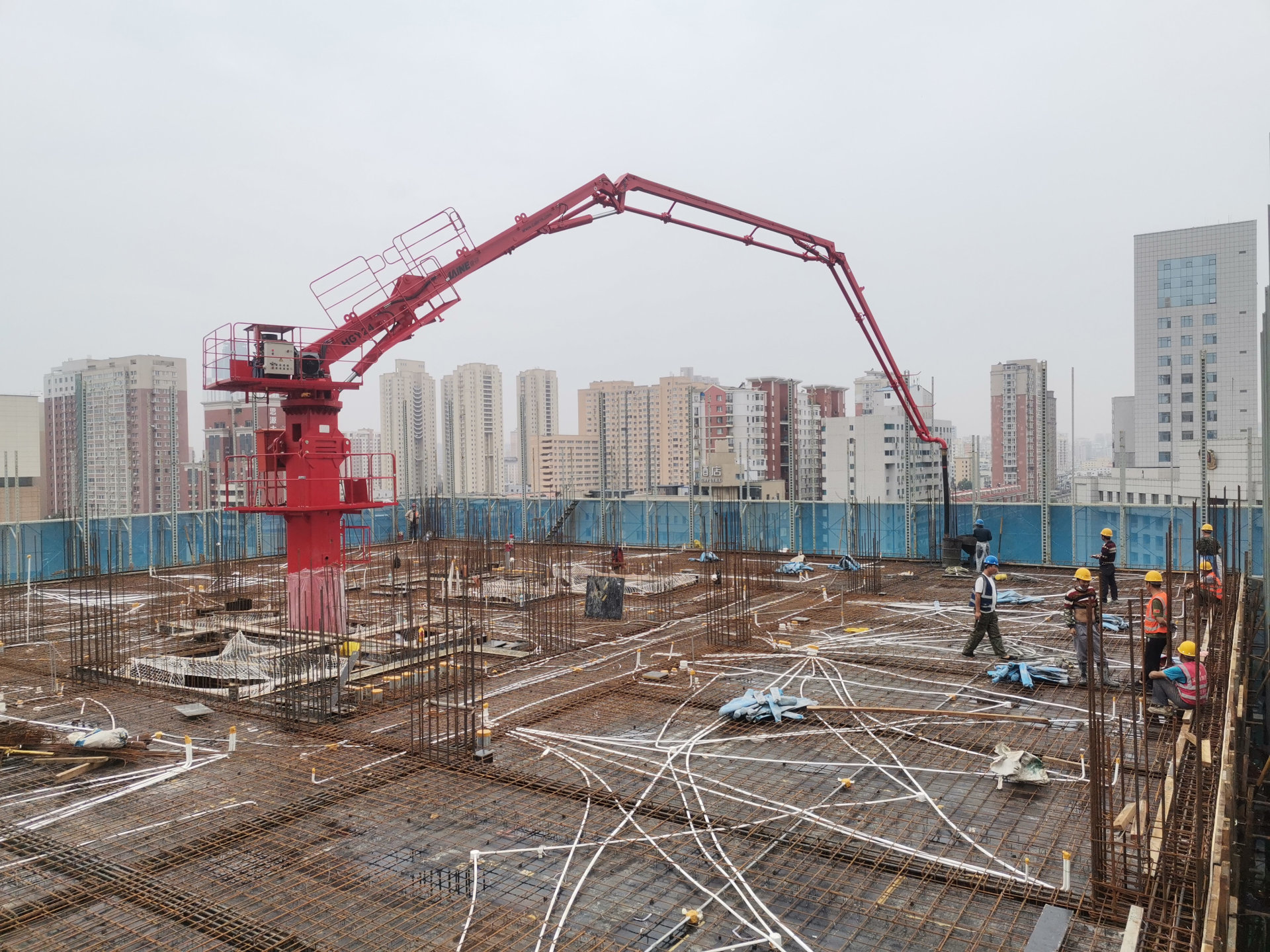 4.布料桿可自行爬升,除拆裝外不需依賴塔機(jī)或其它起重設(shè)備,在整個施工過程中受干擾因素很少。