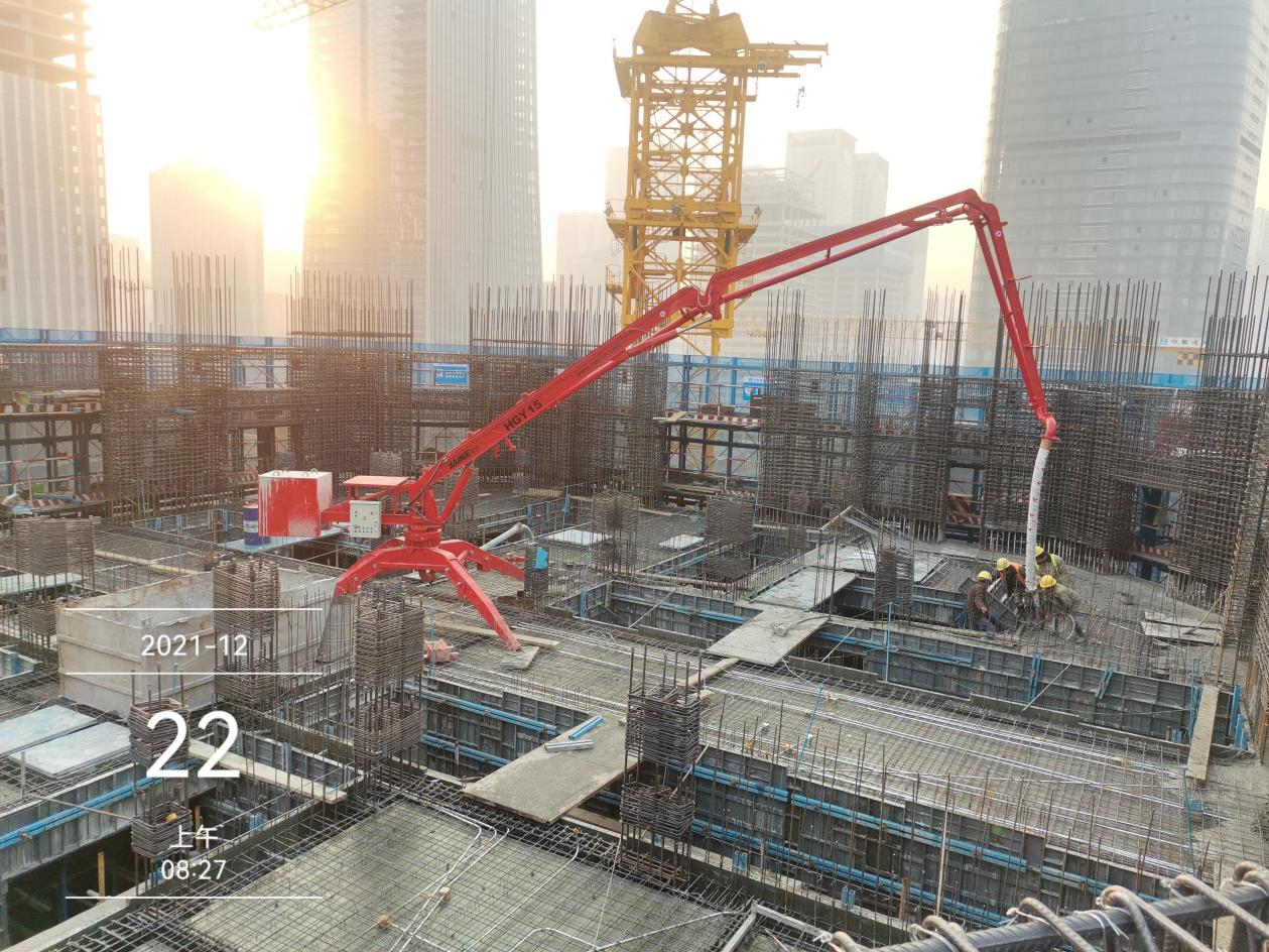 濟(jì)南復(fù)地國際金融中心260米超高層項(xiàng)目將建53層超高層辦公塔樓一棟,最高處達(dá)260米。該項(xiàng)目總建筑面積128680平方米,地上總建筑面積126267平方米,地上包含辦公、商業(yè)功能區(qū)。地下建筑面積2213平方米。其室外地坪至最高點(diǎn)達(dá)260米。A1地塊總停車位757輛。該項(xiàng)目使用的布料機(jī)為凱博科技生產(chǎn)的HGY15移動(dòng)式布料機(jī)。