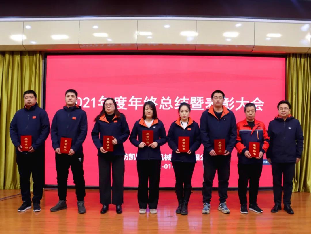 田國(guó)承宣讀凱博科技2021年度表彰文件,與會(huì)領(lǐng)導(dǎo)為優(yōu)秀員工頒獎(jiǎng)。